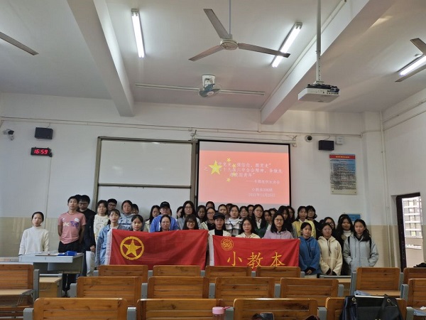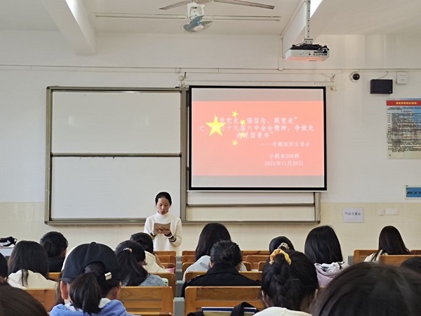 为了让同学们了解中国百年征程的风雨历程,争做敢担当、勇奋进的先进爱国青年,2021年11月25日下午,我院小教本206班于14-204教室开展学党史,强信念,跟党走”之“学习党的十九届六中全会精神,争做先进爱国青年”专题组织生活会,小教本206班全体成员参与此次专题组织生活会。