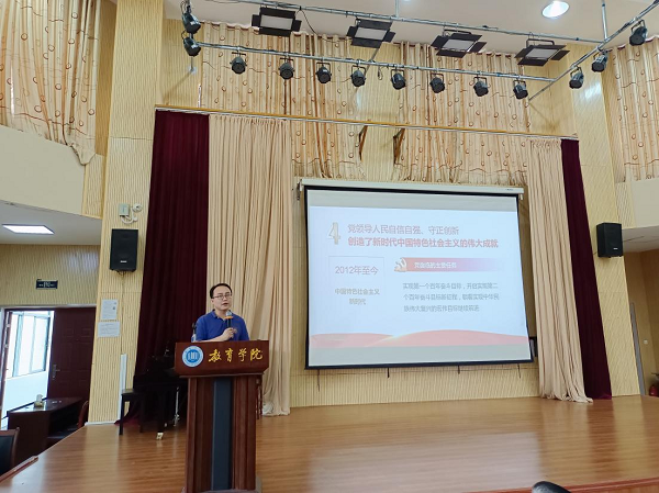 为进一步推进党史学习教育持续走深走实,切实抓好支部党员队伍的建设,紧跟时政热点。2022年4月25日下午,教育学院党委在1B-115报告厅召开学习贯彻党的十九届六中全会精神宣讲会,参加此次会议的有教育学院党委书记叶汝坤、副书记陈鹏,教师党支部黄兴勇、党务秘书陈琪等人,以及教育学全体学生党员、发展对象、入党积极分子。会议由陈鹏副书记主持。