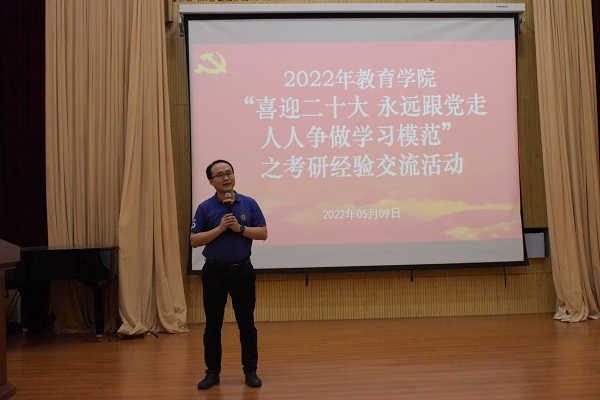 为进一步调动我院学生的考研热情,明确考研目标,了解更多考研信息,解答同学们对考研存在的疑问,5月9日下午,我院在1-115开展了考研成功学子经验交流活动,本次交流活动邀请到我院4位考研成功学子担任主讲,我院党委书记陈鹏、教师尹闯、辅导员罗晓霞、曹桂磊、李想、陈琪出席本次活动,我院2019级学生、2021级学前专升本学生到场聆听。