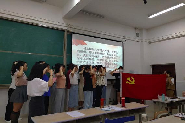 大会围绕接收陈丽婷等11名发展对象成为预备党员的议题开展。本次会议严格按照《中国共产党章程》中关于接收预备党员的相关规定进行:首先公布发展对象名单,接着由发展对象汇报个人情况,再到入党介绍人介绍其培养考察情况,接着由全体党员进行无记名投票。经决议,大会通过陈丽婷等11同志为中共预备党员。最后支部书记李想老师带领老党员以及新接收的预备党员宣读入党誓词。
