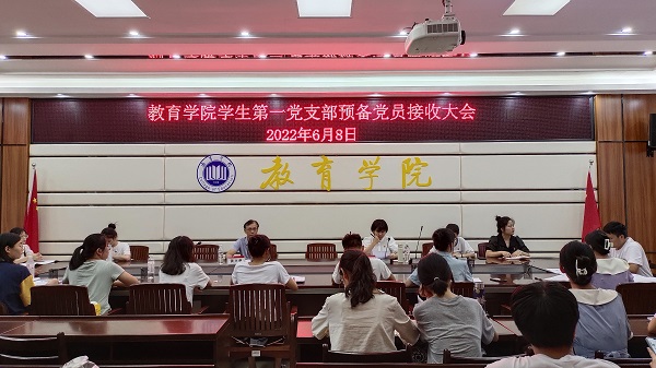 为壮大支部党员队伍,增强支部力量,为党组织汇入新鲜血液,6月8日晚,教育学院学生第一党支部于1-412会议室召开了2022年春季学期预备党员接收大会。我院学生第一支部书记罗晓霞、教师党员黄兴勇及支部全体党员、发展对象参加此次会议。本次会议由梁柯担任主持人。