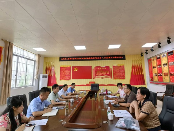 座谈会上,带队老师何雪玲和简文艳分别先阐述本次调研的目的,介绍此次实习安排的人数和实习要求,期望教育局与学院一起高度重视实习工作的指导和安排,在师范生培养的最后一站竭尽全力塑造高素质准教师,未来加入当地教师队伍,为当地教育事业做贡献。接着,陈鹏副书记向教育局介绍我院师范生的培养情况,小学教育专业和学前教育专业得到了进一步发展。最后,教育局和实习小学就实习生的指导老师、跟班学习、实习工作进度和住宿等方面的安排做了简要介绍,同时也对往届师范生的综合素质进行了评价,肯定了我院师范生的整体综合能力。此外,上思县教育局领导和我院领导对北部湾大学教育学院在上思县第三小学进行实习基地建设的方案进行洽谈。