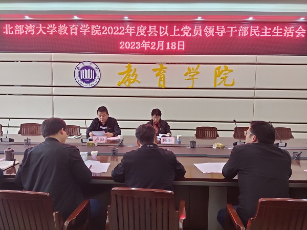 根据《中共北部湾大学委员会关于开好2022年度县以上党员领导干部民主生活会的通知》(湾大党字〔2023〕1号)要求,2023年2月18日下午教育学院召开2022年度党员领导干部民主生活会。学校党委常委、党委组织部部长陆衡,机关党委副书记卢山到会指导。会议由教育学院党委书记叶汝坤主持,学院领导班子成员参加,党政办、学工办等部分党员代表列席。