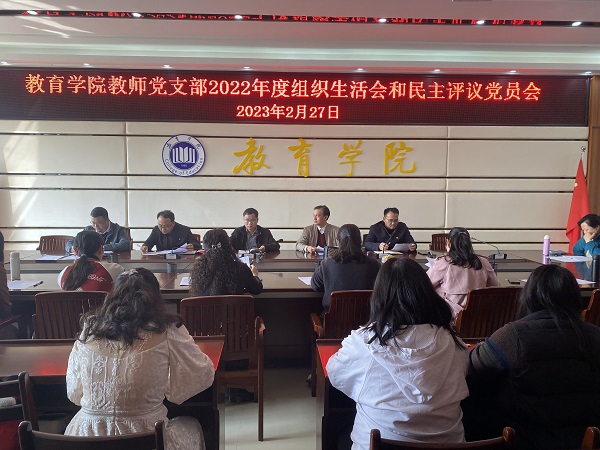 2月27日下午,教育学院教师党支部在1A-412会议室召开2022年度组织生活会暨民主评议党员会议,会议由党支部副书记黄兴勇同志主持,支部全体党员参加。