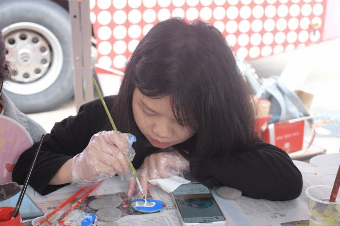 活动初期,我院团委学生会面向全体团委学生会成员招募12名志愿者并做好活动的相关准备。活动过程中,志愿者们首先帮助同学们把鹅卵石涂成白色,以便于同学们在鹅卵石上绘画。随后,志愿者们向同学们讲解如何把颜料的三原色调制成不同的颜色。最后,同学们根据自己的喜好,绘制出栩栩如生的图案。前来参与的同学络绎不绝,活动现场氛围热烈。在场的同学纷纷表示,在鹅卵石上绘画,一方面可以展示自己的绘画技术与技巧,另一方面可以培养自己的耐心,同时,鹅卵石还可以作为小装饰。