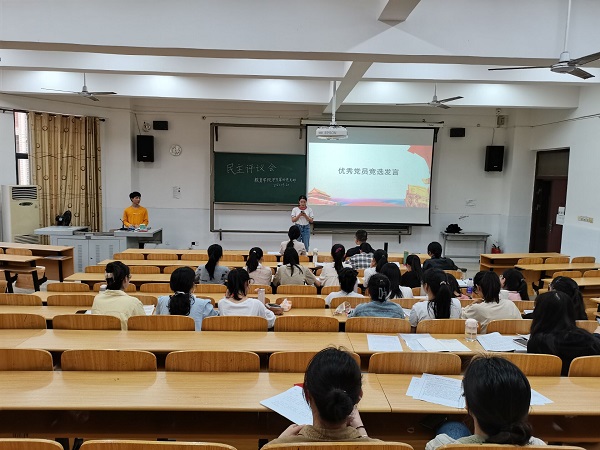会议伊始,陈云同志带领全体党员奏唱国歌。而后,支部书记归妙玲与各学生党员先后进行了批评与自我批评,深刻反省自身存在的问题,听取其他同志建议。张珂主任作总结发言,他首先表扬了党员同志们诚恳的态度,提出了应把思想学习结合到专业学习中的建议,鼓励学生党员们增强自信心,更大胆地迈出前进的步伐。紧接着,我支部开展了民主评议会。学生党员廖广梅、零薇上台进行发言,总结过去一年所获得的成就与成长,严于律己,更好地服务我院师生。经投票决定,廖广梅、零薇同志当选我支部优秀党员。归妙玲老师总结时强调,作为党员应该提高思想觉悟,努力学习党的先进思想理论,学好专业知识,为以后走上工作岗位创造条件,希望各位同志们能结合自身实际,反思并改正自身缺点,不断进步,发挥党员先锋模范作用。