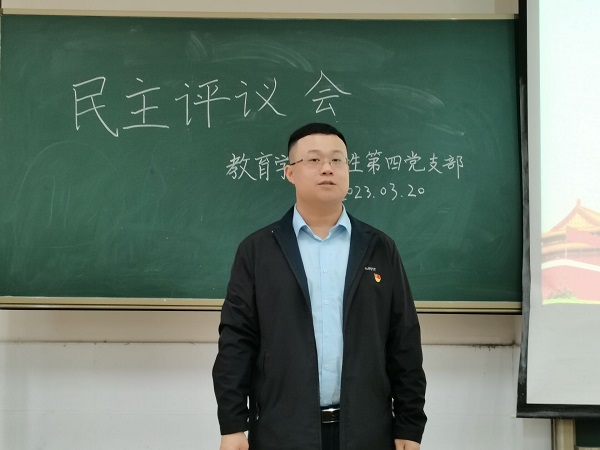 为深入学习贯彻党的二十大精神,坚持不懈用习近平新时代中国特色社会主义思想凝心铸魂,2023年3月20日,我院学生第四党支部于1B-209教室开展基层组织生活会及民主评议会。本次会议由我院学生第四党支部预备党员陈云担任主持人,我院党委办公室主任张珂,学生第四党支部书记归妙玲出席本次会议。