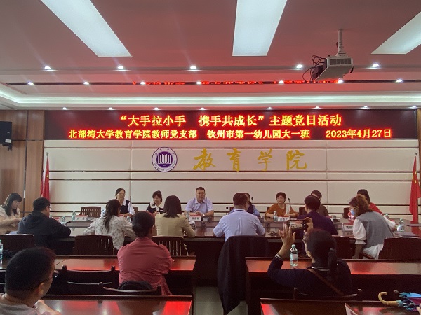 4月27日上午,我院教师党支部与钦州市第一幼儿园大一班在我校举办“大手拉小手,携手共成长”主题党日活动,该班师生家长参加活动。