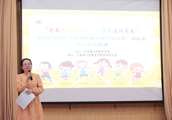 活动在开场舞的精彩表演下拉开了帷幕,吸引了观众的眼球。接着是各组的精彩演出,节目类型有唱跳、钢琴独奏、合唱、配音秀以及朗诵,这些丰富多彩的节目展现出师范生积极向上的精神风貌。活动过程中还开展了“emoji猜成语”和“听歌识曲”的暖场活动。观众们积极参与竞答,现场气氛活跃。最后,施又丹老师对此次活动进行点评,她对本次表演以及现场观众的积极参与给予了充分肯定,希望同学们能一直保持积极向上的生活态度,努力把握展现自我的机会,为成为一名合格的人民教师努力奋斗。