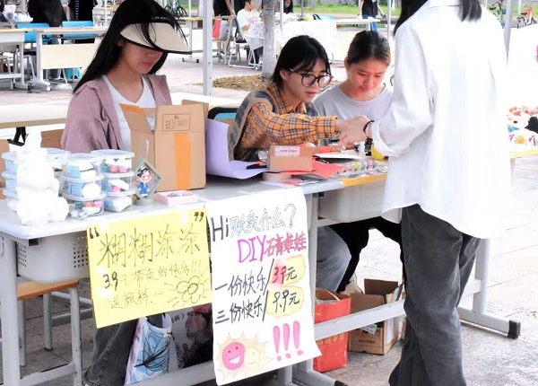 本次活动由摊主自行决定出售物品,为广大在校生提供展示创意和锻炼能力的舞台,让同学们体会到劳动的价值,进一步弘扬勤俭节约的中华民族传统美德。(罗玲莉 刘莹莹 摄)