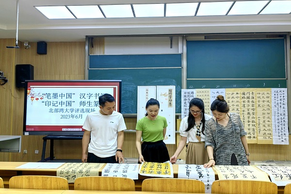 为深入贯彻党的二十大精神,加大国家通用语言文字推广力度,传承中华优秀汉字文化,推进文化自信自强,展现我校当代大学生对经典文化的认同,教务处主办、教育学院承办学校2023年“笔墨中国”汉字书写、“印记中国”师生篆刻大赛,全校学生积极参与本次比赛。6月11日下午由语委办主任李惠,学工办副主任曹桂磊,教师曾允金、陈琪对参赛作品评分。