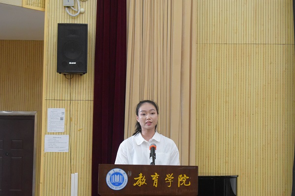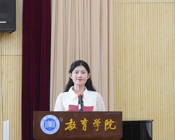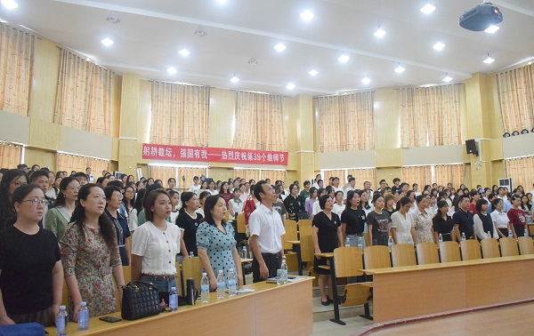 在庄严的国歌声中,庆祝表彰大会拉开帷幕。会上,学院副院长黎茂昌、尹闯、学院党委副书记陈鹏依次宣读了相关表彰文件,学院领导为受表彰的老师们颁发了荣誉证书。学前专升本221班赵敏娟作为学生代表发言,她表达了对老师们的感激之情,表示将会继续努力学习,不辜负老师们的谆谆教导。今年新入职教师黄靖淋在发言中表示将不忘初心,做潜心育人的教育工作者,为推动我院教育质量的提升贡献智慧和力量。学院党委书记叶汝坤向广大教师致以最诚挚的节日问候,他勉励全体教师不忘初心,落实立德树人根本任务,切实推进师德师风建设,再创佳绩。(石晓露 黄文慧 摄)