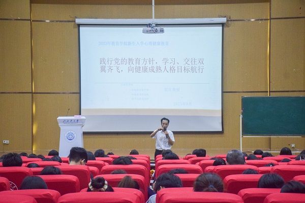 梁庆教授围绕“践行党的教育方针,学习交往双翼齐飞,向健康成熟人格目标航行”主题展开教育。他强调作为一名人民教师应落实党的教育方针,阐明培养教师素养的重要性,指出大学的学习包含德智体美劳五个部分且具有专业性、自觉性和自主性的特点。梁庆教授对同学们寄予殷切期望,希望同学们牢记和坚持党的教育方针,使自己的学习与人际关系双翼齐飞,提升自我人格,提高未来发展高度,成为一名具有健康成熟人格的优秀的人民教师。