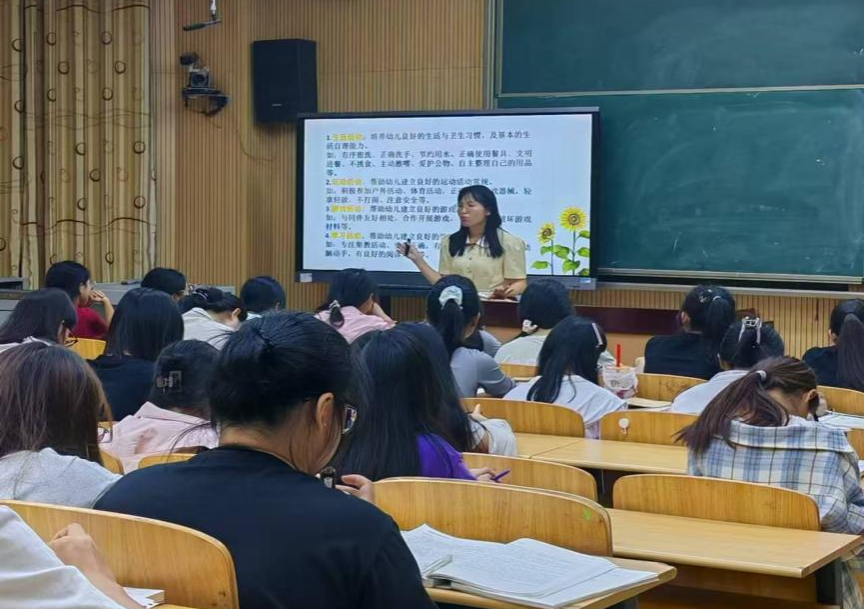2024年10月25日晚上,钦州市幼儿园副园长杨金萍为我院24级学前教育本科生开展“立足现在,‘职’引未来——如何成为一名专业的学前教育人”讲座。本次讲座由教育学院黄丽萍老师主持,24级学前教育本科生到场参加。
