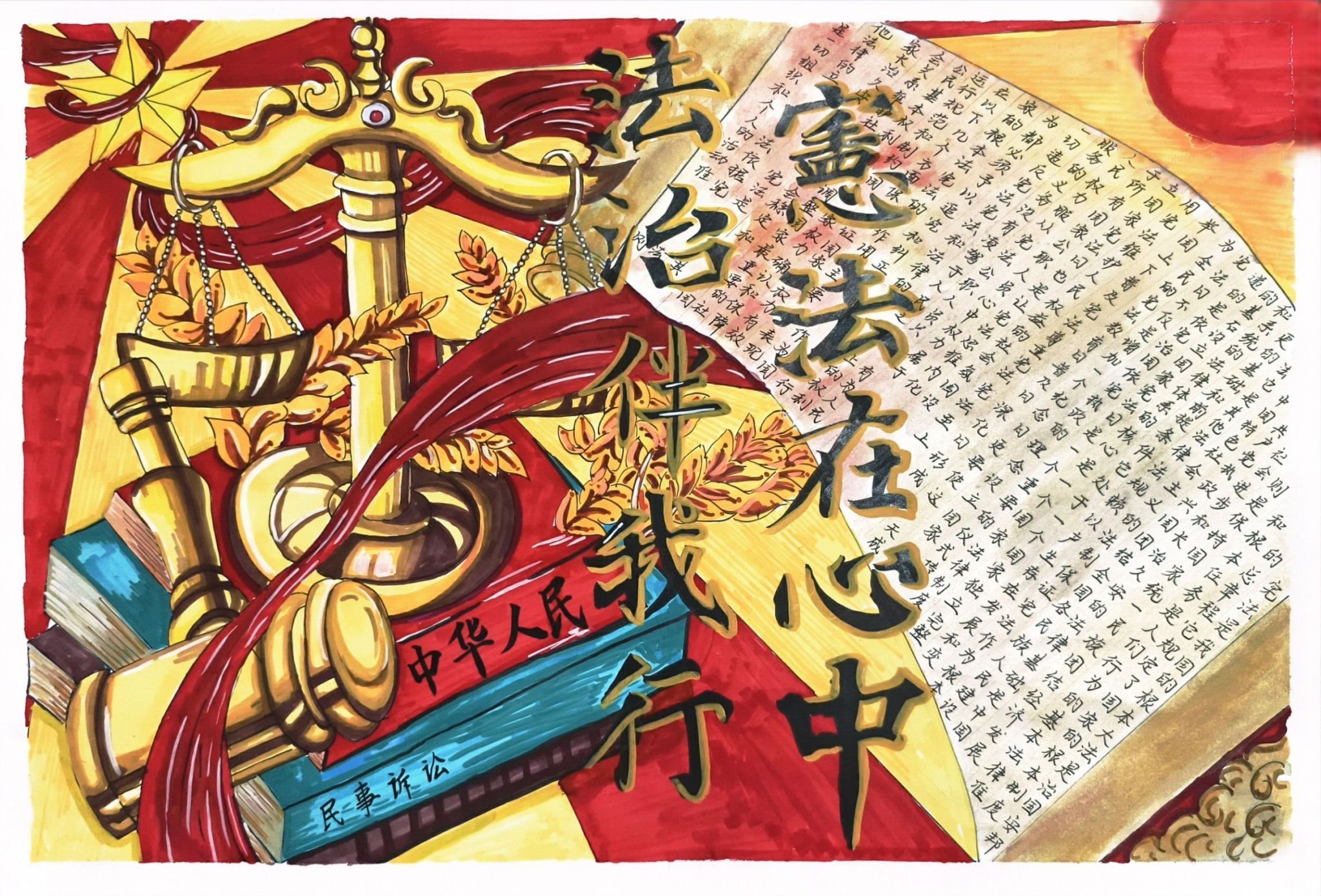 一等奖作品“宪法在心中,法治伴我行”