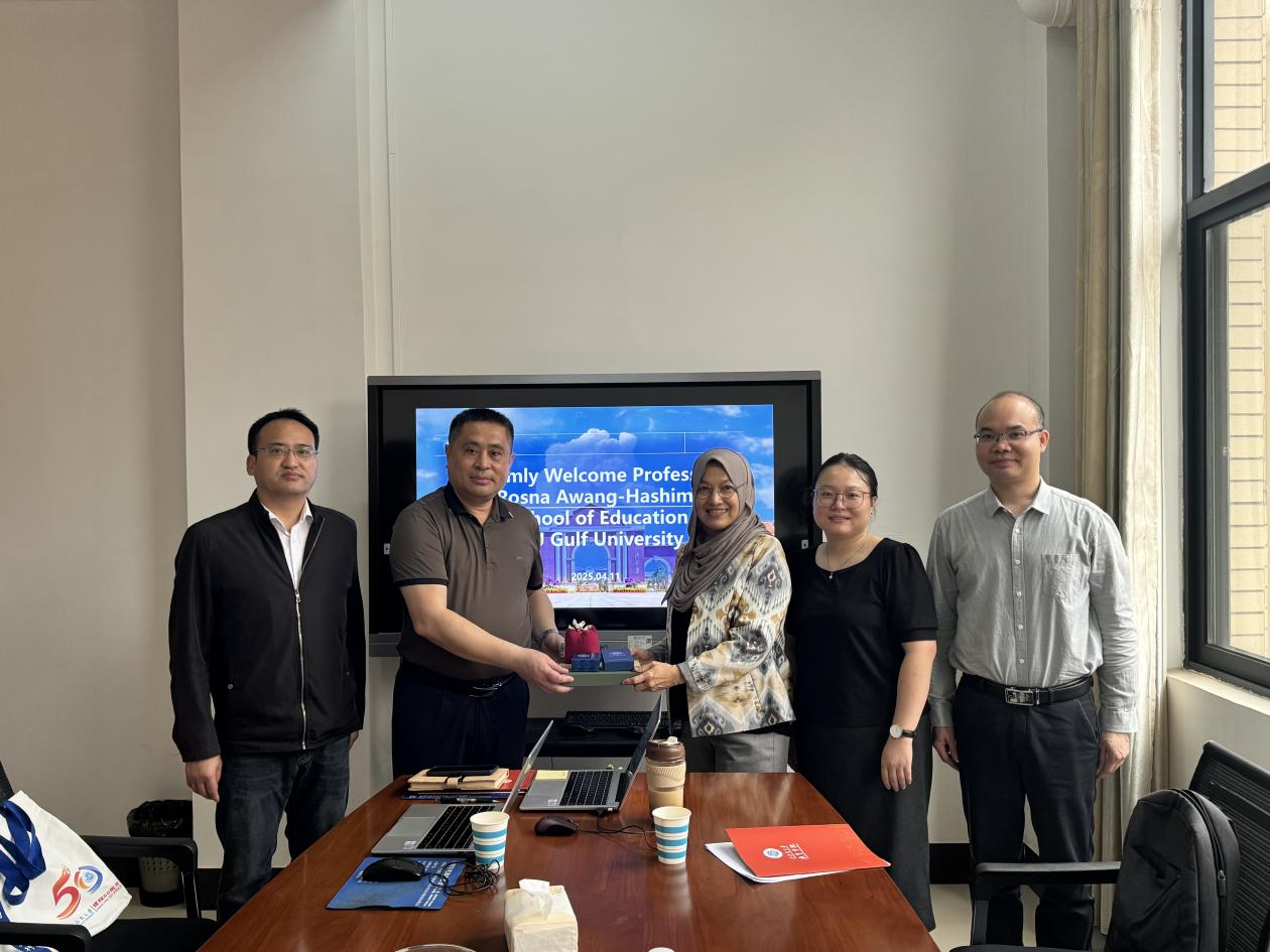 为加强国际学术交流与合作,2025年4月11日,马来西亚北方大学前副校长、马来西亚教育部经济部咨询专家、国际期刊《Malaysian Journal of Learning and Instruction》总主编Rosna Awang-Hashim教授应邀到访教育学院,进行座谈交流并作学术报告。教育学院院长周顺平、副院长尹闯、副院长邬德利等热情接待Rosna教授一行。