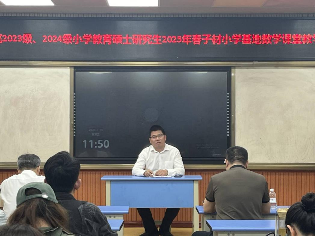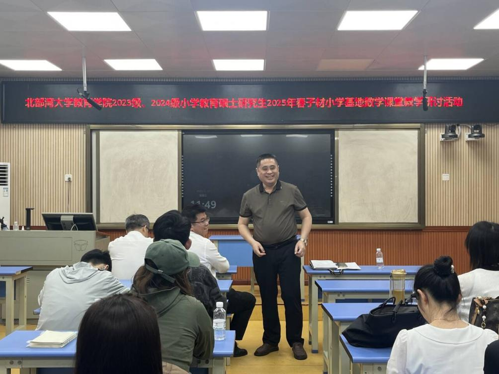 为深化高校与基地校的合作,提升研究生教学实践能力,2025年4月16日上午,北部湾大学教育学院2023级、2024级小学教育硕士研究生赴钦州市子材小学基地,开展以“小学数学课堂教学研讨”为主题的教育实践。