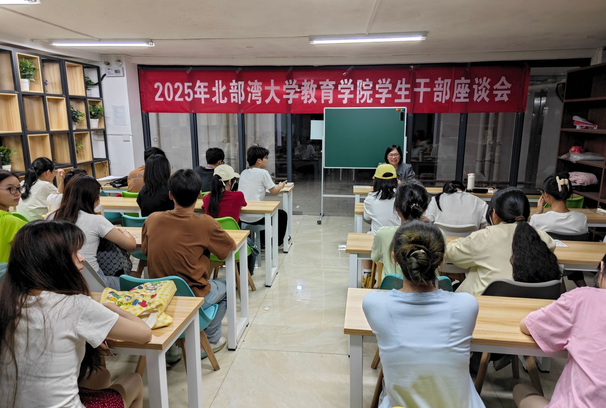 4月24日晚上,我院在东三栋“一站式”学生社区学海小筑召开2025年学生干部座谈会。会议由我院党委副书记莫秀群主持,教育学院团委学生会全体干部参加。