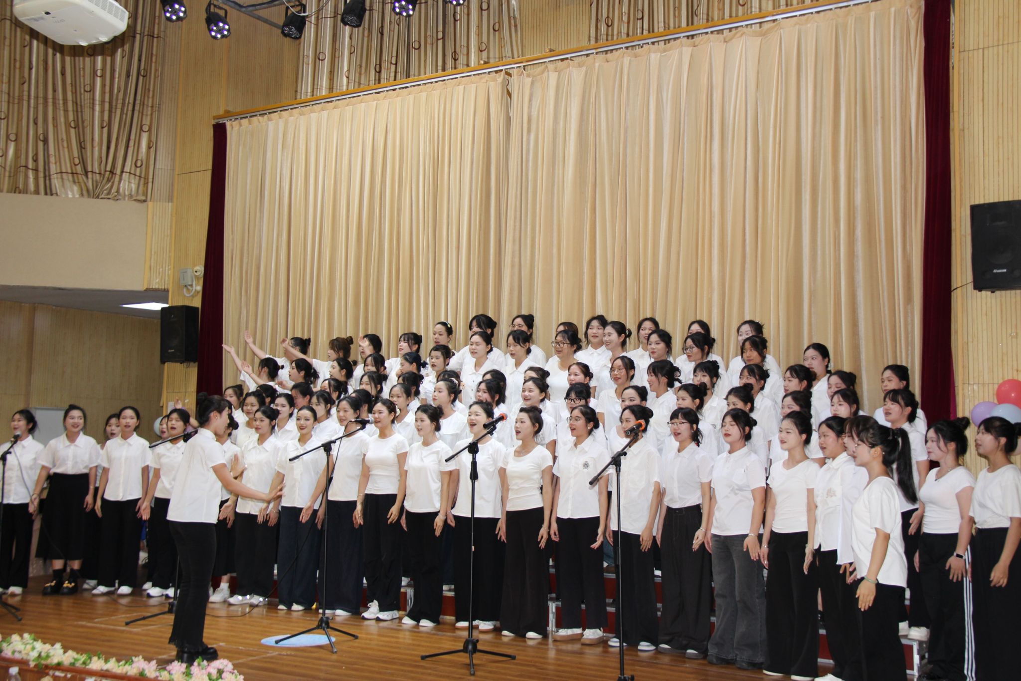 1B–115报告厅中,第二课堂艺术课程展演暨毕业生欢送晚会精彩上演。本次展演包括钢琴、舞蹈和合唱等类型的节目。活动伊始,主持人胡惠岚和康慧娟为本次活动致开场词。而后,精彩的节目在动人的舞姿拉开帷幕:钢琴伴奏如潺潺流水,为节目注入灵动的韵律;走秀环节,模特们身着自制服饰,步伐自信,展现出独特的魅力;大合唱的歌声嘹亮,饱含着对毕业生的美好祝福与对未来的无限憧憬……现场氛围热烈,掌声、欢呼声此起彼伏。活动尾声,吴霜老师进行点评,她充分肯定了同学们的努力和台前幕后师生们的付出;莫秀群副书记寄语毕业生们,希望他们利用所学技能到祖国需要的地方去贡献自己的青春力量。