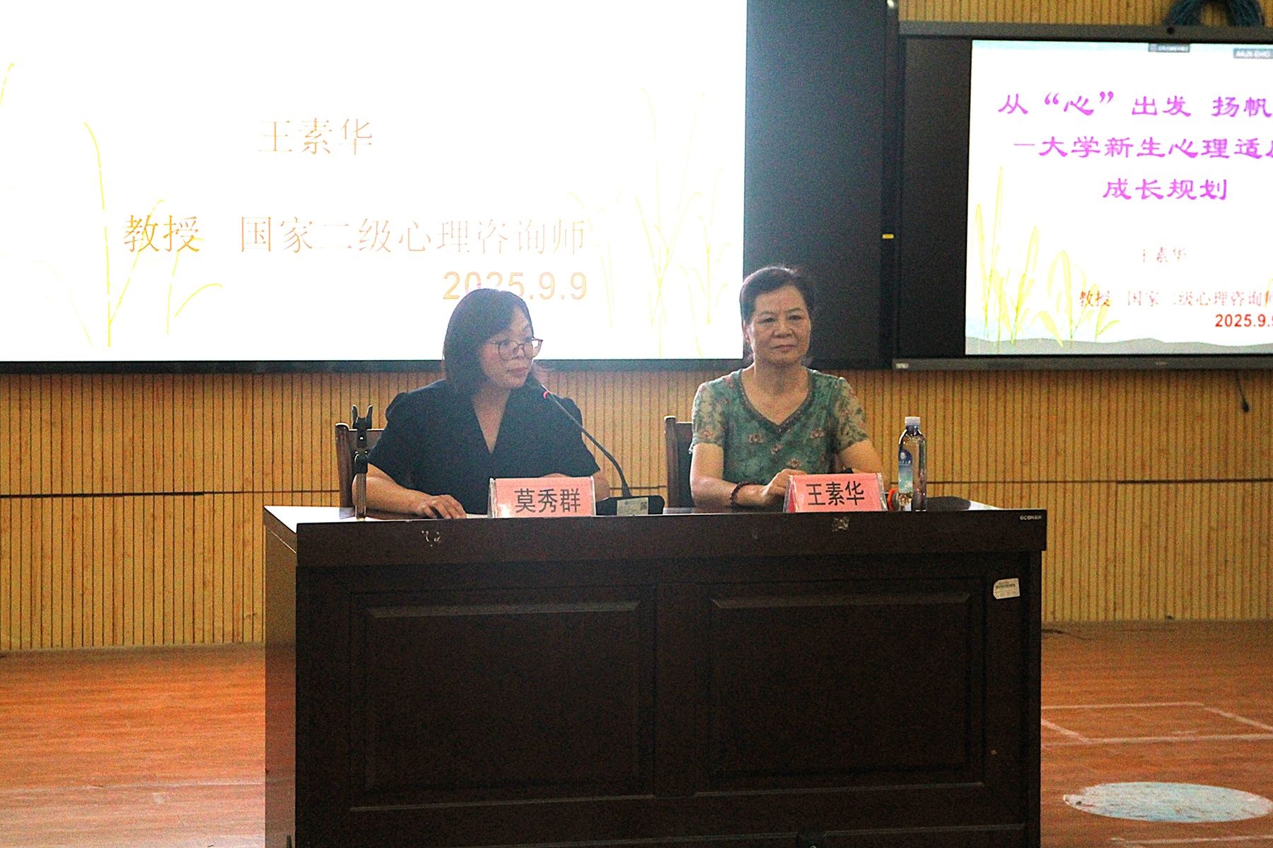 9月9日下午,我院在1B-115报告厅开展“从‘心’出发扬帆起航——大学新生心理适应与成长规划”讲座,本次讲座特邀王素华教授担任主讲人,学院党委副书记莫秀群主持,全体新生参会。