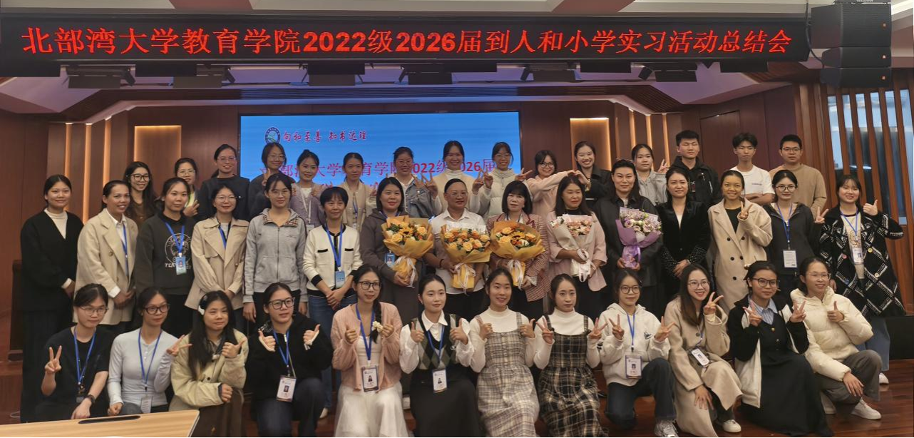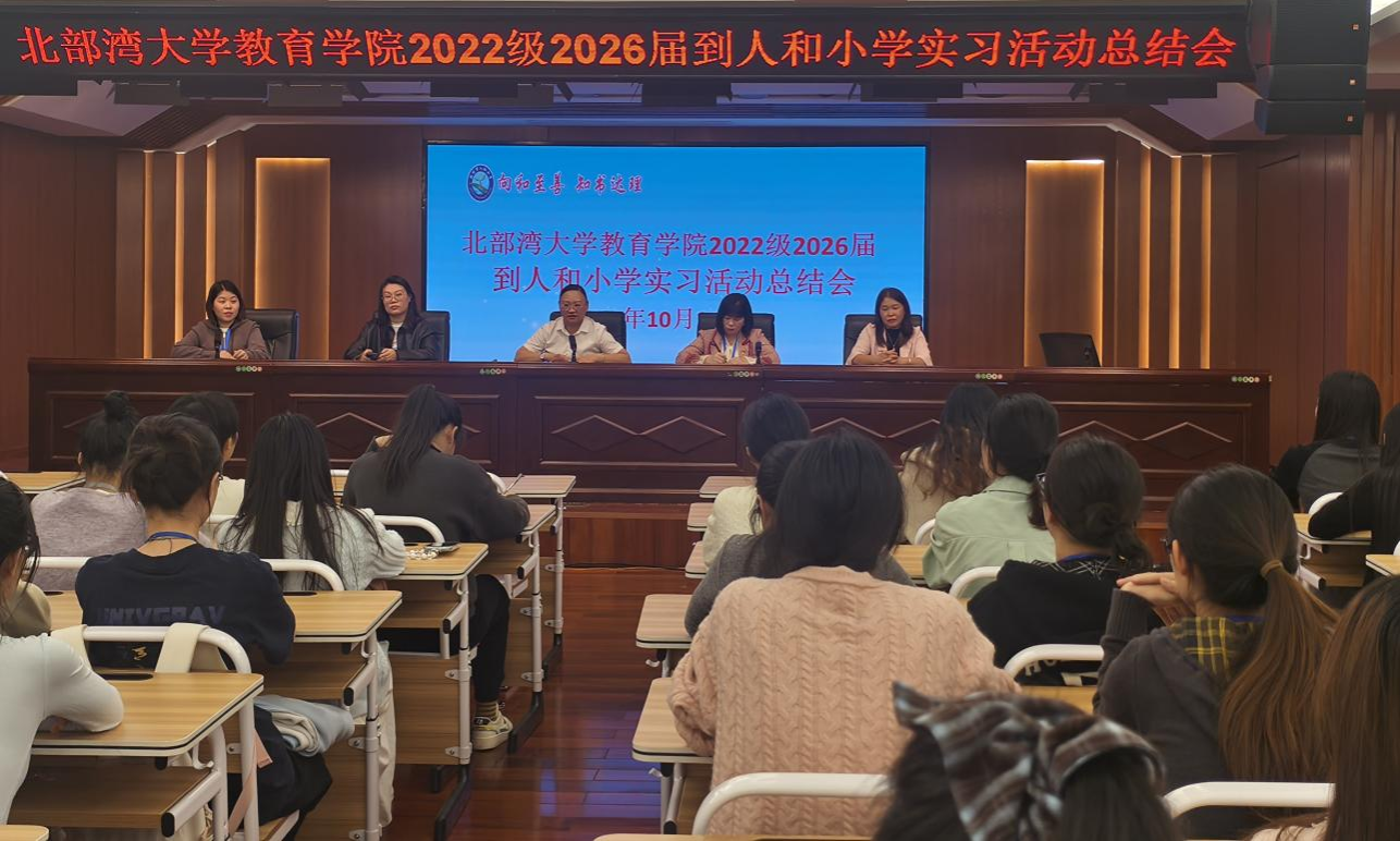 2025年10月24日,北部湾大学小教本225班教育实习总结会在钦州市人和小学顺利举行。会议由人和小学教导处韦广婷主任主持,北部湾大学教育学院邬德利副院长、刘海燕老师、王婉聪老师,人和小学罗海燕副校长、各带班班主任及全体实习生共同参会。