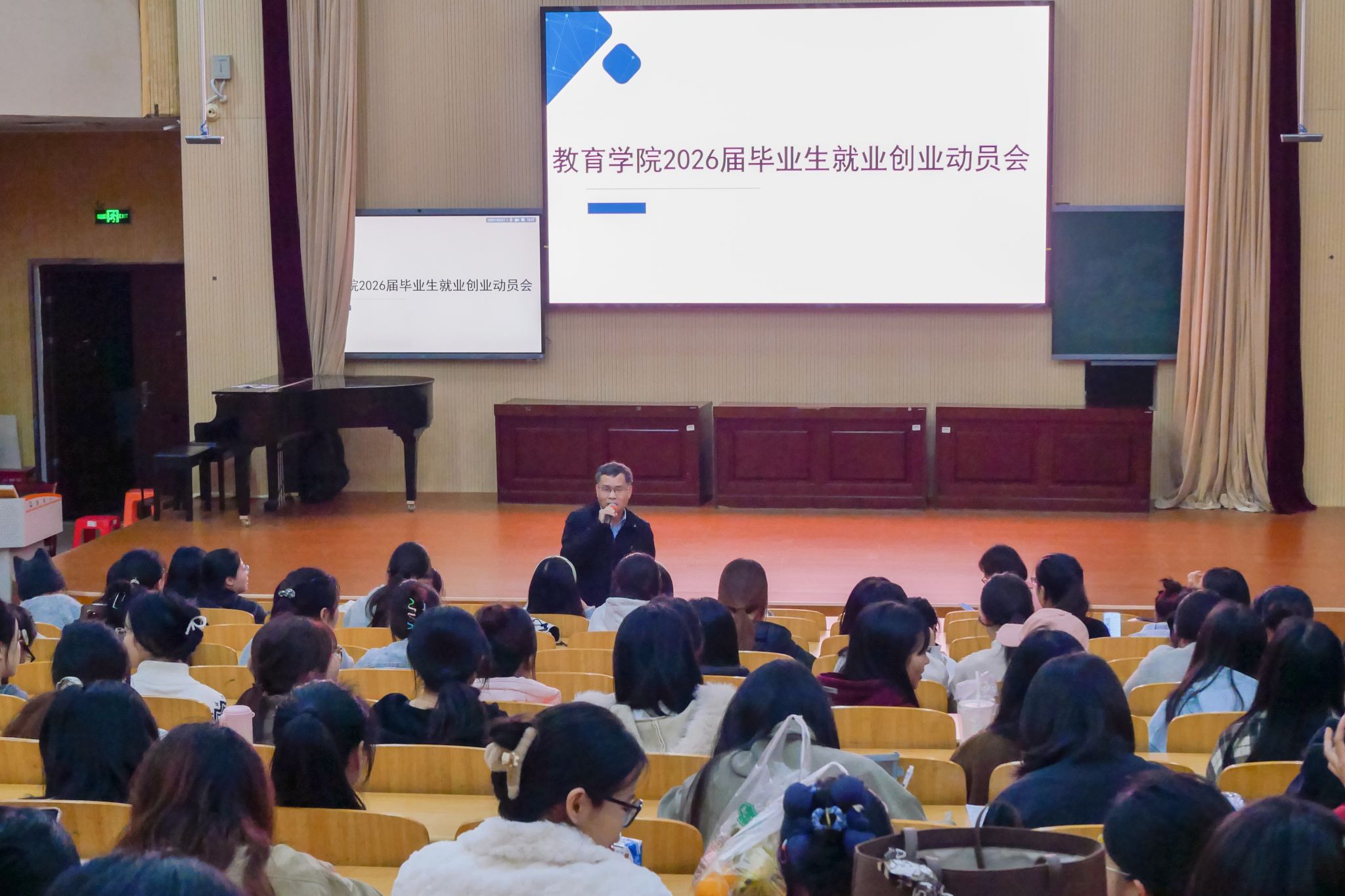 此次会议的召开,不仅为毕业生送上了实用的求职“干货”和离校指引,更有效化解了学业与就业的双重困惑,进一步增强了毕业生的求职信心与底气,为他们平稳过渡至职场、顺利完成离校手续筑牢了坚实基础。(赵洲洋 摄)