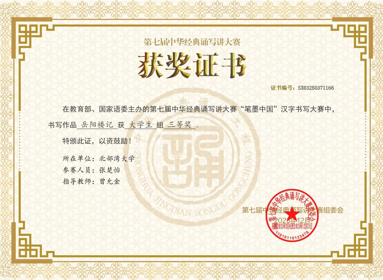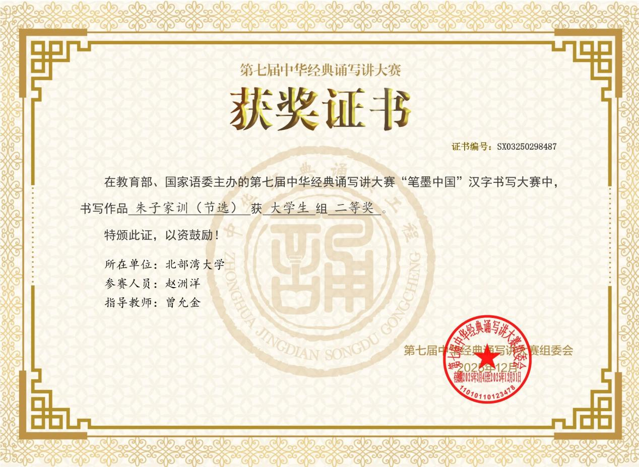 为贯彻落实中共中央办公厅、国务院办公厅《关于实施中华优秀传统文化传承发展工程的意见》和全国语言文字会议精神,全面深入实施中华经典诵读工程,教育部和国家语委办组织了第七届中华经典诵写讲之“笔墨中国”汉字书写大赛。我院小学教育专业师范生有10人进入全国决赛,经过激烈角逐,最终6人取得了喜人的成绩。其中,我院赵洲洋在此次比赛中荣获全国二等奖,张楚怡、黄春丽、张露等3人荣全国获三等奖,阮树华、张晓冰等2人荣获全国优秀奖。