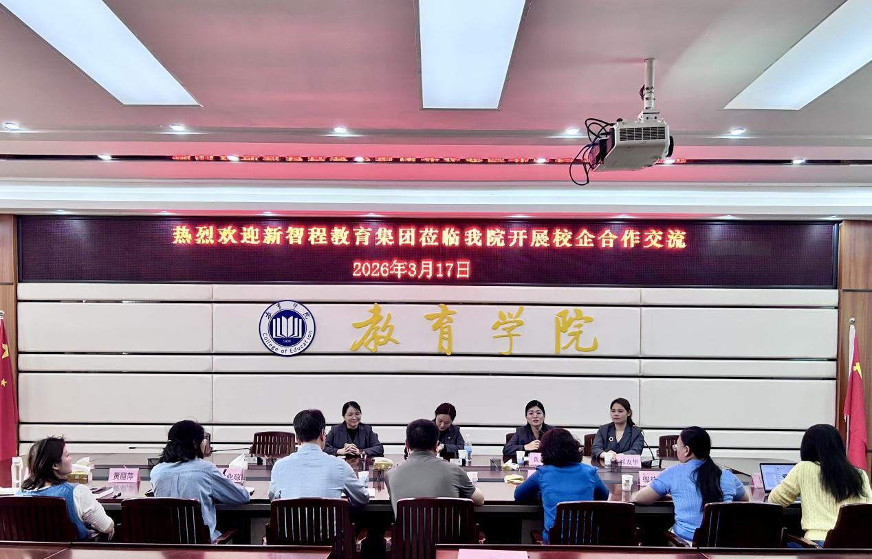 3月17日下午,新智程教育集团总园长刘梓涵一行莅临北部湾大学教育学院,就深化校企合作事宜进行座谈交流。学院周顺平院长、莫秀群副书记、邬德利副院长、继续教育学院陈业启、封业琼等参加座谈交流。