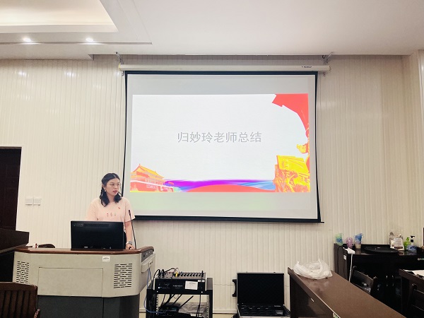 会议最后,支部书记归妙玲总结发言,大学生党员应该去学习党的创新理论,学习习近平总书记在党的二十大报告中指出的七种思维能力。作为新时代的青年,希望我们的党员同志要树立好先锋模范作用,做好表率,把教育教学技能和实践技能做好,保持初心,努力成为服务地方基层教育的中流砥柱。