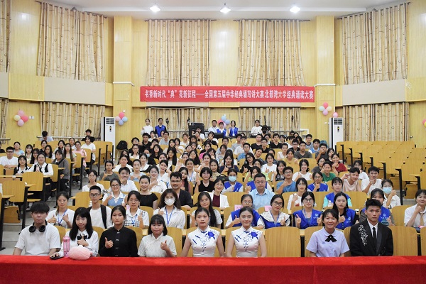 为加大国家通用语言推广力度,传承中华优秀文化,推进文化自信自强,结合我校实际,由教务处主办,教育学院承办的北部湾大学2023年“诵读中国”经典诵读大赛决赛于5月31日晚在1号教学楼115阶梯教室举行。此次比赛由国家级测试员古雅峰老师、谭力老师和省级测试员张珂老师担任评委,并邀请语委办主任李惠老师和我院学工办副主任曹桂磊老师参加。