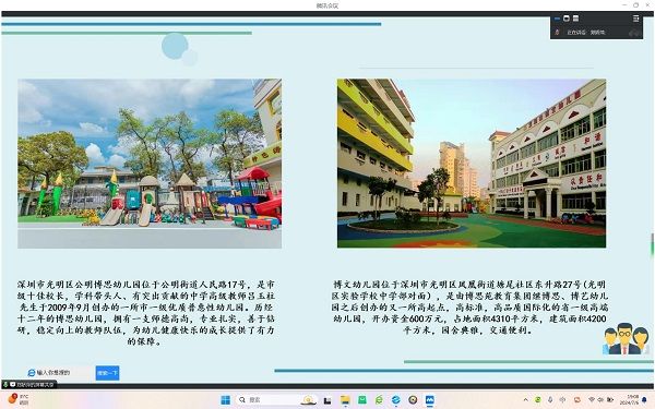 会议伊始,贺老师简要地介绍了博思苑教育集团的基本概况和企业文化。而后通过展示图片及相关信息向同学们详细地介绍了该公司旗下的这两所幼儿园。同学们对这两所幼儿园的招聘岗位及职责、工资福利待遇、实习准备及要求、工作环境等有了进一步的了解。最后,贺老师鼓励同学们努力提升自己,积极把握就业机会。