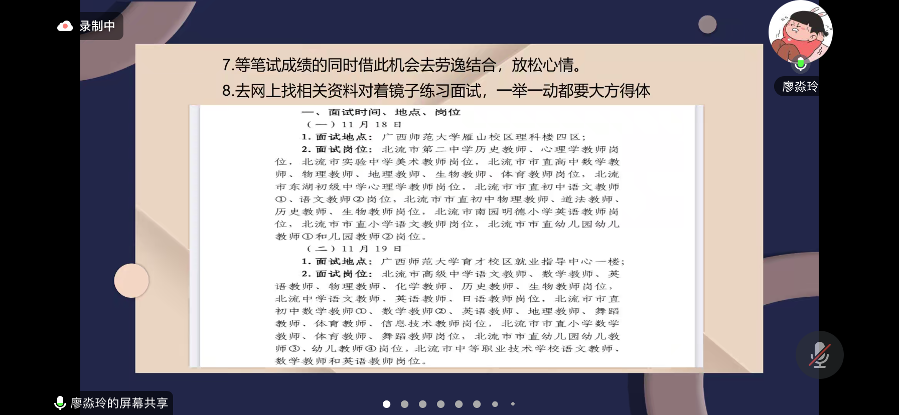 为让毕业生进一步了解到学前教师就业形势,树立正确的就业观,掌握求职面试技能,11月24日我院组织开展学前教育专业线上求职经验分享会。本次会议邀请了我院已成功求职的优秀毕业生郑妍、廖淼玲、林云进行分享。会议由教育学院辅导员郑娇萍老师主持,我院学前教育专业学生积极参加此次会议。