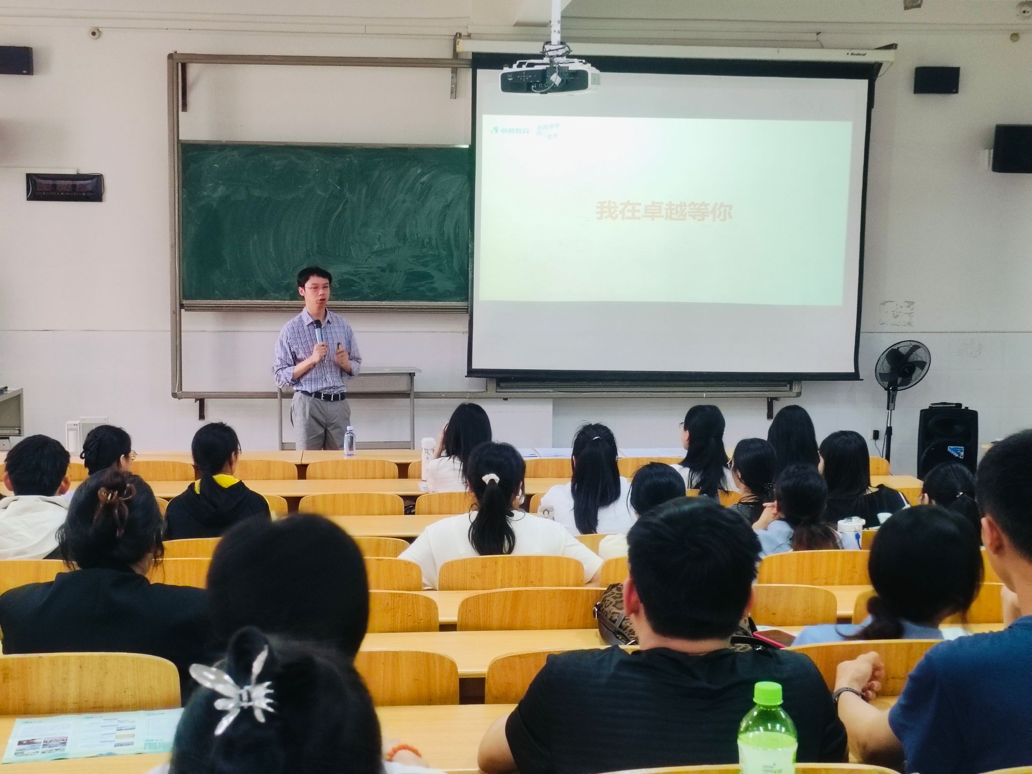 会议伊始,伍总监向同学们介绍了卓越教育的公司文化、工作环境以及发展前景,还特别强调了卓越教育是一个充满希望和可能的团队。通过伍总监详细地介绍,同学们对卓越教育的概况、人才需求、平台发展机会等有了进一步的了解。而后,优秀校友岳杨东分享了他在卓越教育的学习成长经历,鼓励同学们把握求职就业机会。会议最后,车老师细心地解答了同学们的困惑,并鼓励同学们积极应聘卓越教育。
