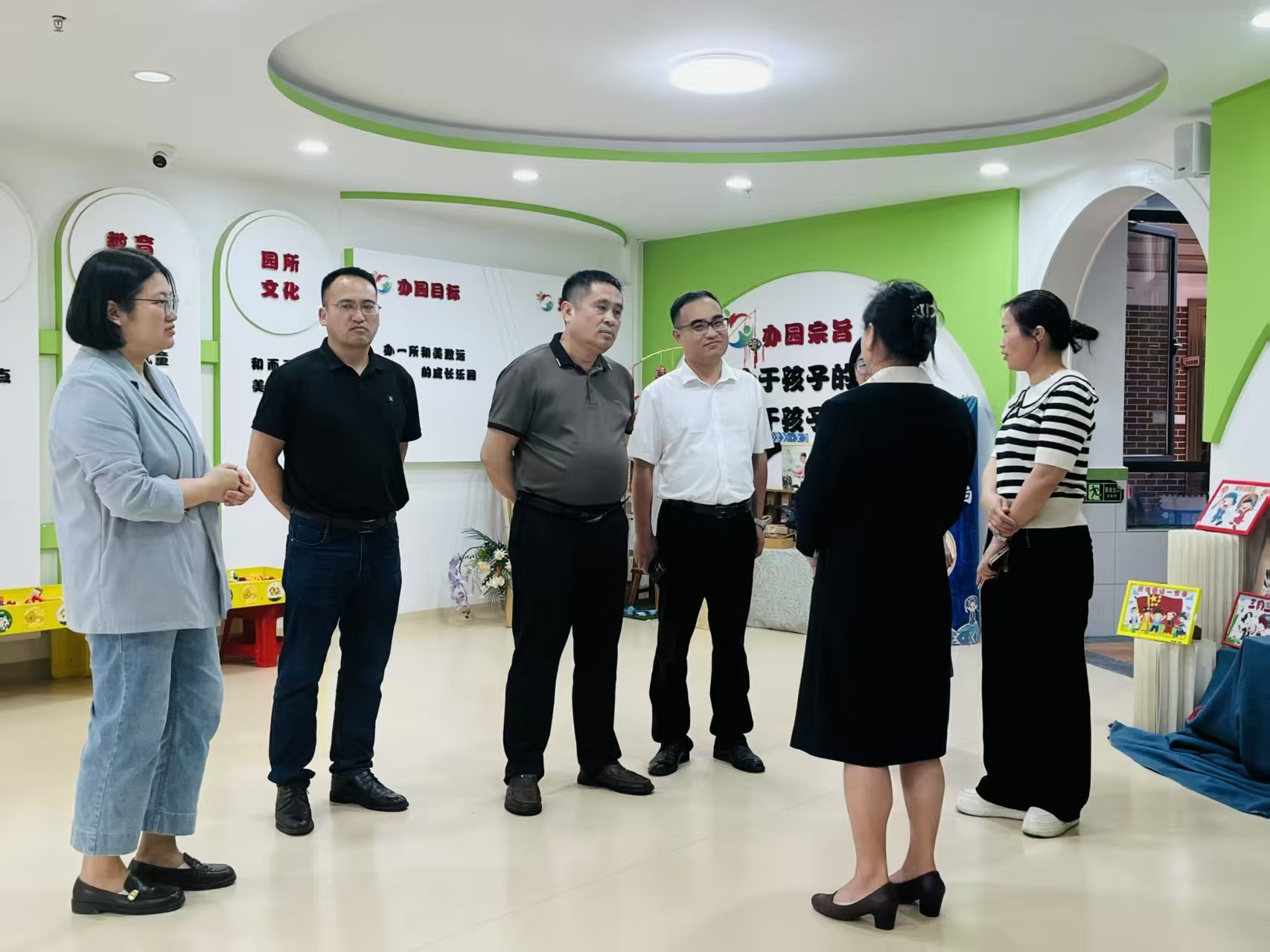 马秀明(左4)一行实地走访北流市南圆第五幼儿园