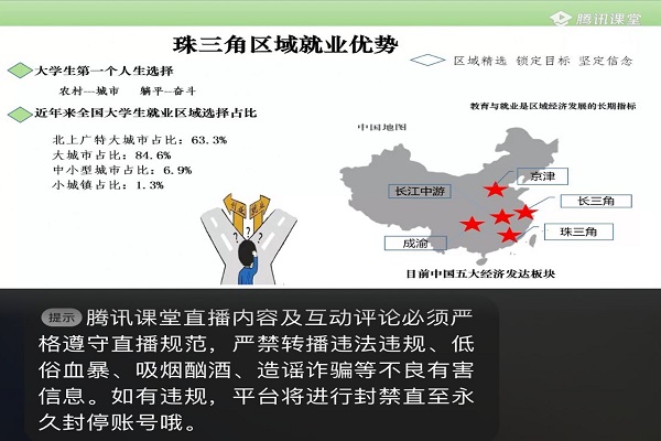在会上,秦老师对同学们会遇到的择业困惑,如实践经验缺乏、价值观念模糊展开论述,并强调同学们要做好就业工作的准备,充分了解人力资源信息和行业资讯。而后,秦老师向同学们传授了职场经验,在工作中要化被动为主动,在不断的实践中收获经验和成长。最后,秦老师向同学们介绍了绍珠三角区域的就业优势,引导同学们充分把握两广地区就业机遇,锁定目标,克服困难,实现成功就业。