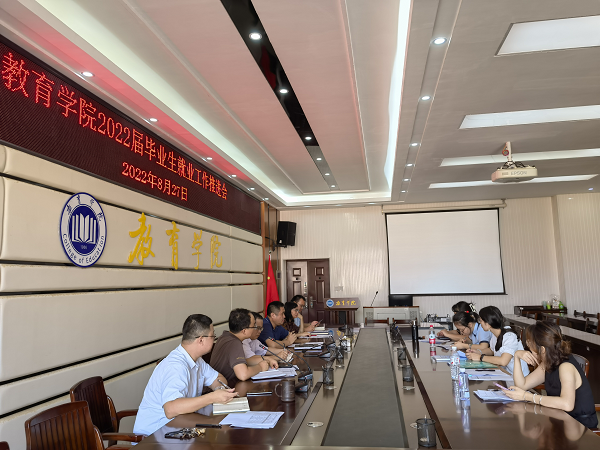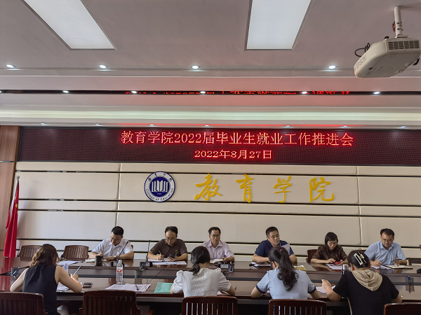 为落实教育部关于2022届高校毕业生就业数据核查工作通知精神,进一步做好2022届毕业生就业工作,确保就业统计数据真实、准确,8月27日,教育学院召开了2022届毕业生就业工作推进会,院长周顺平、院党委书记叶汝坤、副院长黎茂昌、院党委副书记陈鹏、院长助理尹闯和院办公室主任张珂等领导班子出席会议,2022届毕业班班主任以及全体辅导员参加此次会议。