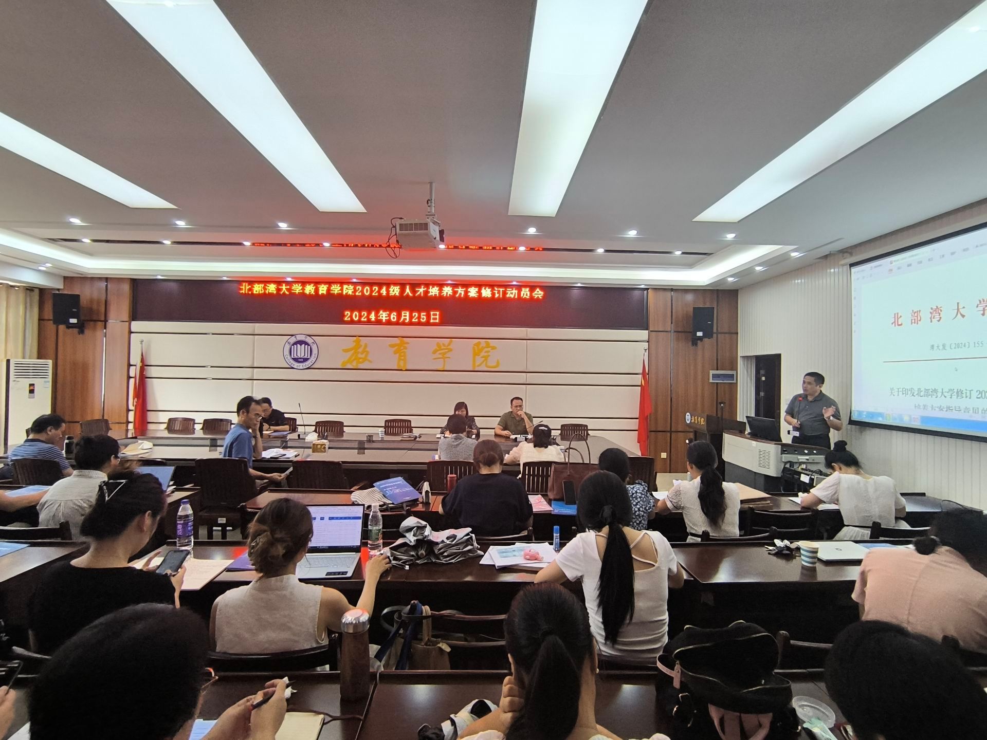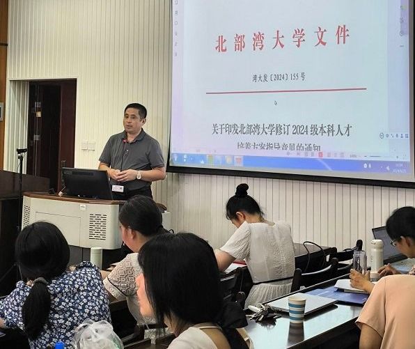 我院于6月25日在1B-412召开全体教师会议,认真学习文件《湾大发〔2024〕155号关于印发北部湾大学修订2024级本科人才培养方案指导意见的通知》。周顺平院长组织2024级人培修订小组成员学习文件《湾大教发〔2024〕110号关于开展2024级本科专业人才培养方案制(修)订工作的通知》,明确了每一阶段需要完成的工作和时间节点,对第一阶段的准备工作的调研部分做了安排和分配。最后周顺平院长给各版本人培的撰写工作进行了分工。