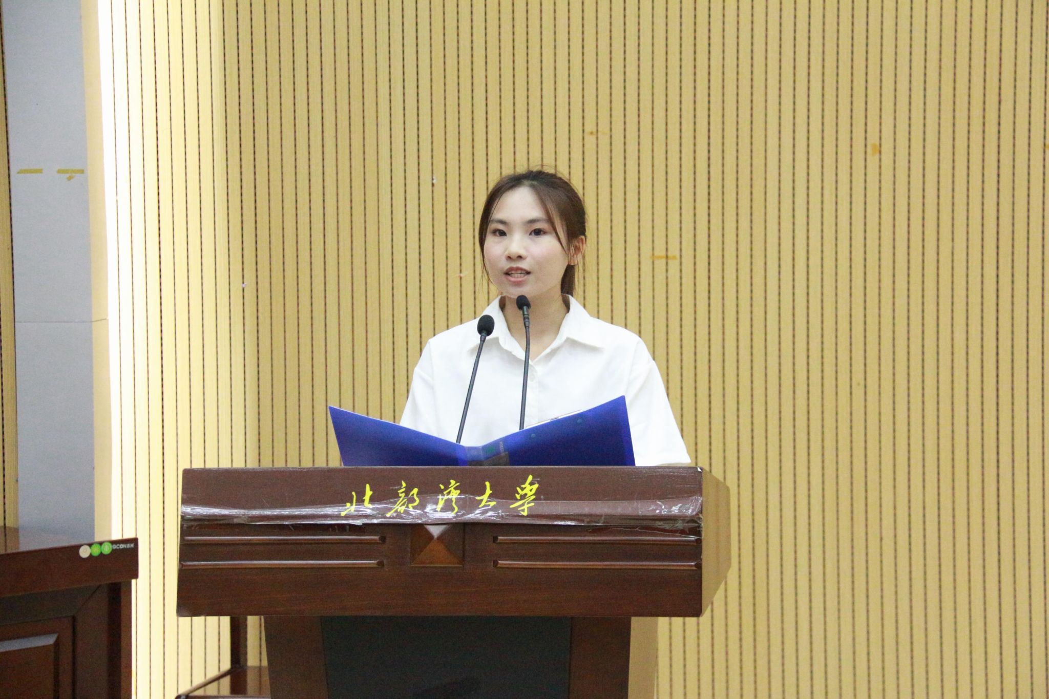 大会初始,各部门负责人、实习生进行自我介绍,完成授牌仪式。随后,唐镔琳老师为优秀实习生颁奖。优秀实习生代表石晓雅在会上发言,表示将永葆初心、积极进取,号召全体成员携手并肩,为学院团委学生会的发展添砖加瓦。紧接着,学生会执行主席周梅对实习生们的工作表现给予了充分肯定,鼓励他们继续保持赤诚饱满的工作热忱。大会最后,辅导员唐镔琳老师作讲话总结,对各位成功转正的实习生表示祝贺,并提出了三点殷切希望:一要坚守服务同学的初心,永葆奉献精神;二要在实践中锤炼真本领,全面提升综合素质;三要以奋斗姿态激扬青春,为个人成长和组织发展贡献智慧与力量。