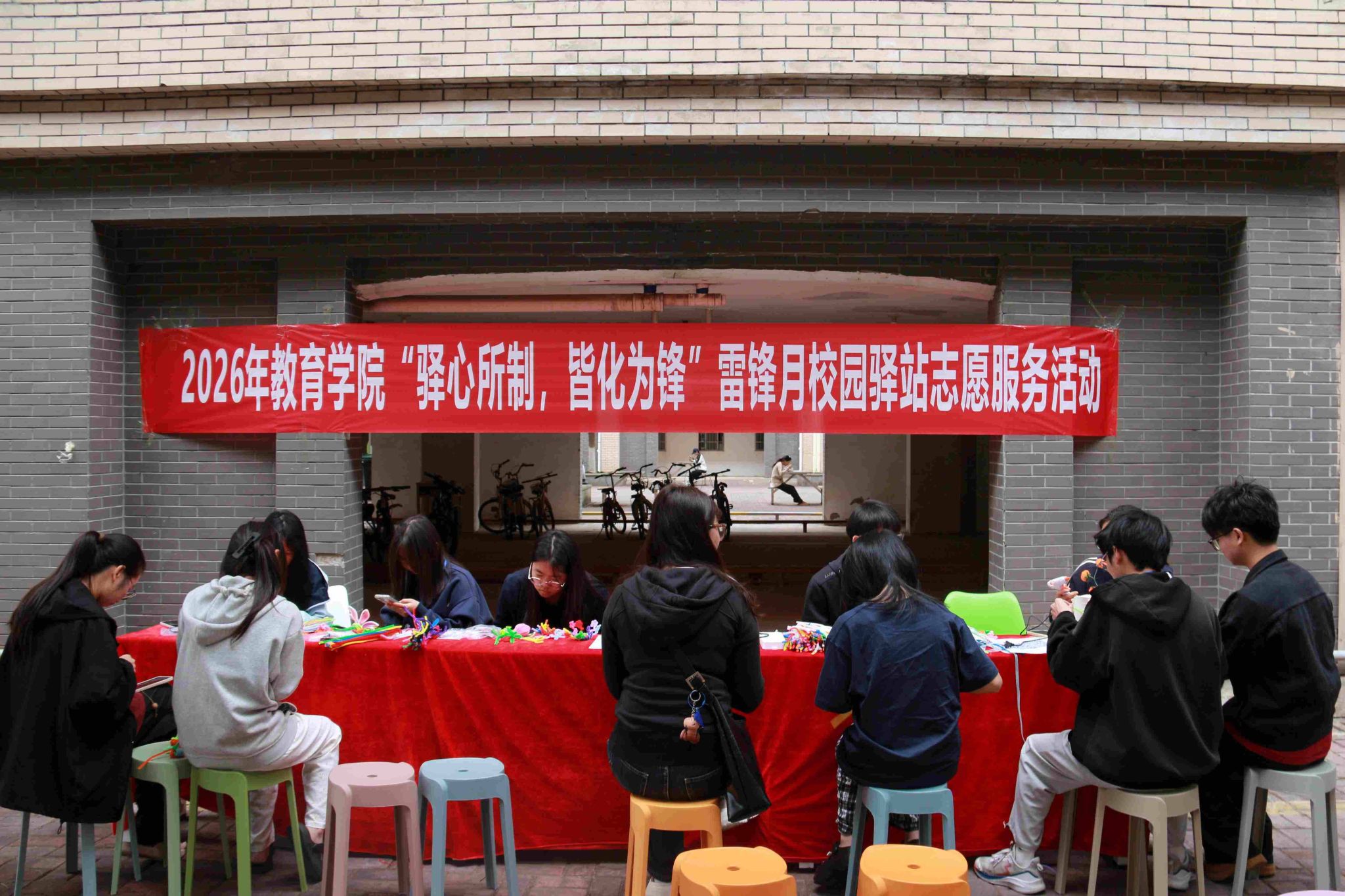 为传承弘扬雷锋精神,让“奉献、友爱、互助、进步”的志愿理念融入青春日常,2026年3月21日至22日,北部湾大学教育学院在东区第二公寓(东3、4、5)楼下顺利开展“学雷锋”活动月之“驿心所制,皆化为锋”校园驿站活动,我院兼职辅导员付丹丹到场指导,学子们积极参与。