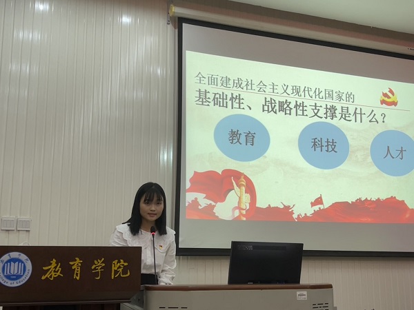 活动伊始,陈莹莹同志与全体党员同志一起回顾了党的二十大报告。陈莹莹同志指出,学习贯彻党的二十大精神,就要深刻把握全面建成社会主义现代化强国总的战略安排和未来五年的主要目标任务,牢牢把握“坚持和加强党的全面领导”“坚持中国特色社会主义道路”“坚持以人民为中心的发展思想”“坚持深化改革开放”“坚持发扬斗争精神”的重大原则,埋头苦干、担当作为,不断推进社会主义现代化建设。随后,全体党员同志进行了一个党的二十大知识问答小竞赛。同志们纷纷表示从本次小竞赛中更进一步的了解了党的二十大精神。紧接着,周蓉蓉老师总结发言。周老师强调,全体党员同志要通过读原著、学原文、悟原理,深刻领会党的二十大报告的科学内涵和精神实质,要以实际行动践行党的二十大精神,奉献自己。
