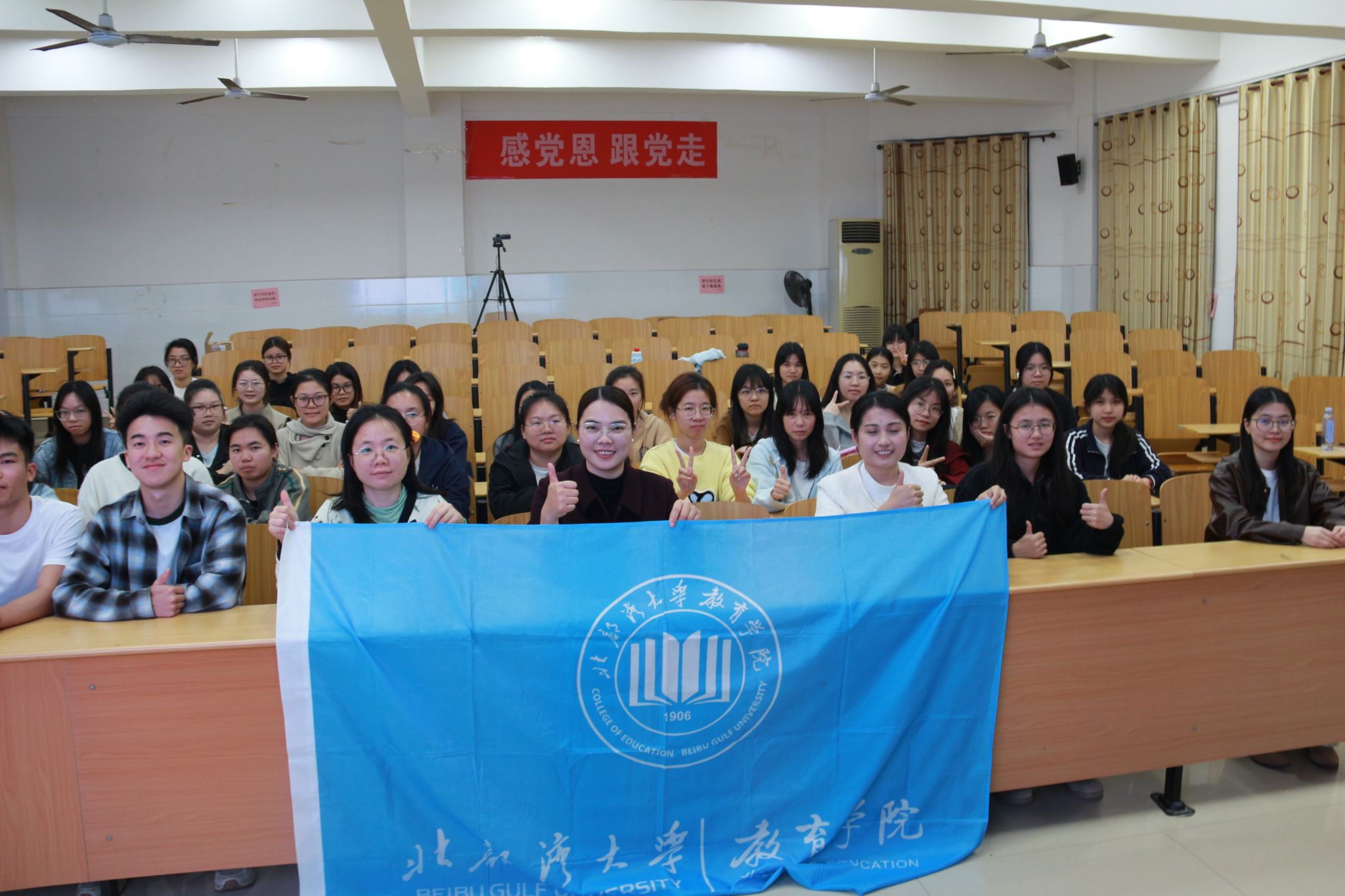 2026年3月12日晚,钦州市钦南区第三幼儿园领导班子到北部湾大学教育学院1A-209教室为学前教育专业毕业班学生的实践教学活动《教育研习》举办系列讲座并在讲座后与学前教育教研室教师开展交流活动。钦州市钦南区第三幼儿园张秋敏园长、沈丽媛副园长担任讲座主讲人。学前教育教研室分管实践教学副主任施又丹、教学法教师黎爱群和韦芳、艺术类课程教师吴霜,教师教育公共教学部教师康书豪,小学教育教研室教师张燕、刘海燕、简文艳、陆璇璇、韦小铃、廖倩,学前本2022级全体学生和其他年级学生参与此次活动。