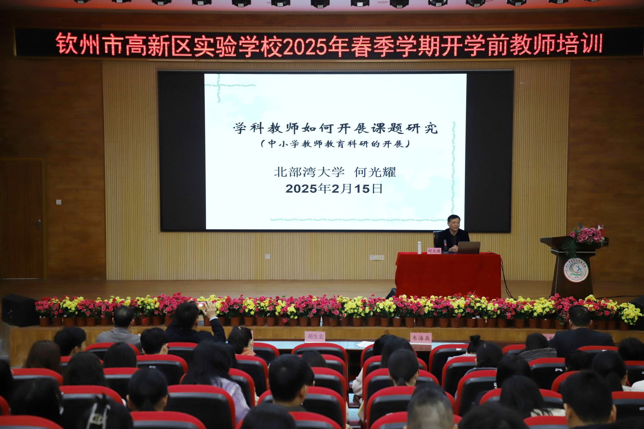 2025年2月15日和28日,我院何光耀教授应邀在钦州市高新区实验学校和钦州市二中附属幼儿园,分别为高新区实验学校的全体老师和广西名校长精准帮扶项目(陆玲名校长团队)成员单位做了“学科教师如何开展教育科研”和“基础教育教学成果的培育与申报”的学术讲座。