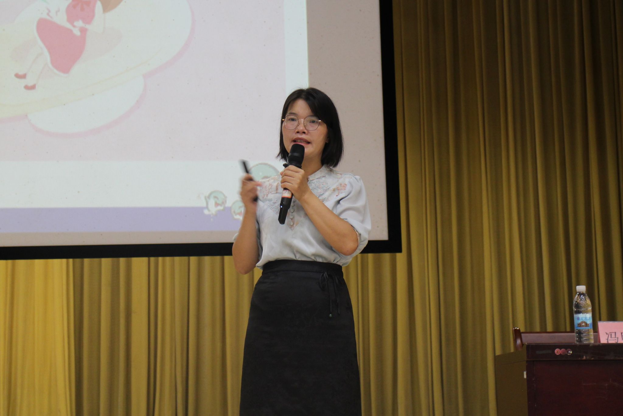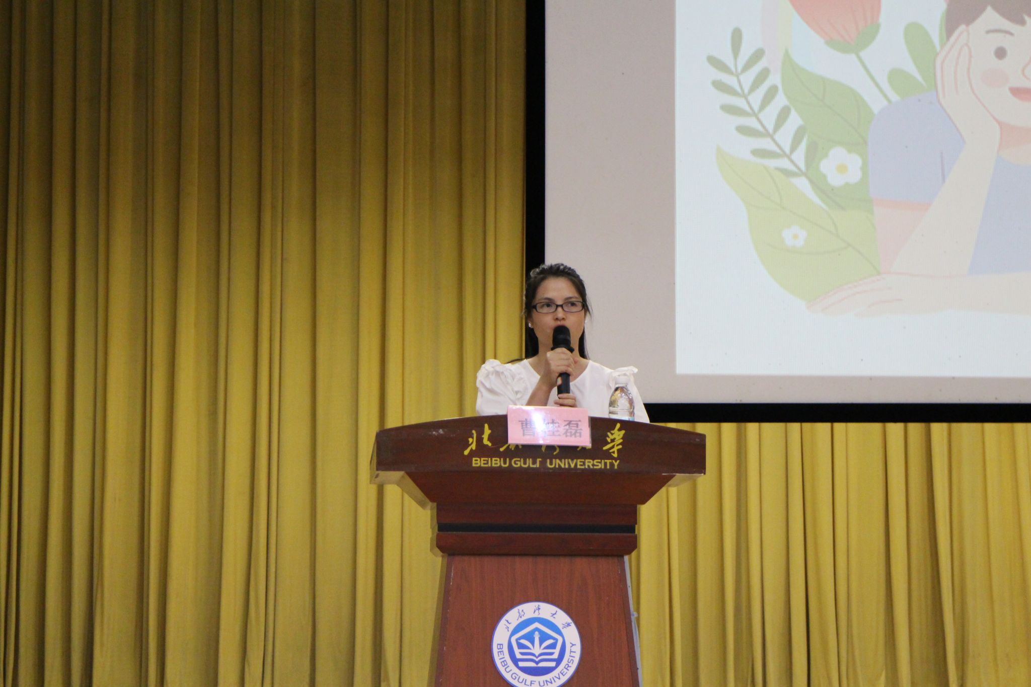 女生讲座伊始,曹桂磊老师向同学们介绍此次讲座的嘉宾和流程,同学们满怀热情。而后,来自妇幼保健院的冯明月副主任从卫生安全、文明礼仪、人际关系、恋爱关系四个方面进行女生教育,她向同学们科普了专业的生理知识以及护理方法,强调身体防护的重要性。随后,心理医生黄雯霞给同学们科普了心理健康知识,并带领同学们进行心情放松活动,同学们积极地投入到其中。最后,曹桂磊和韦秋澳老师为两位主讲嘉宾颁发荣誉证书。